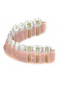 A.インプラント自体は生体となじみの良いチタンでできています。 長持ちさせるのに重要なことは自分の歯と同じような手入れをすることです。ブラッシングはもちろん、歯肉の健康状態や正しい噛み合わせのチェックをするため、半年に1度は定期健診を受けてください。